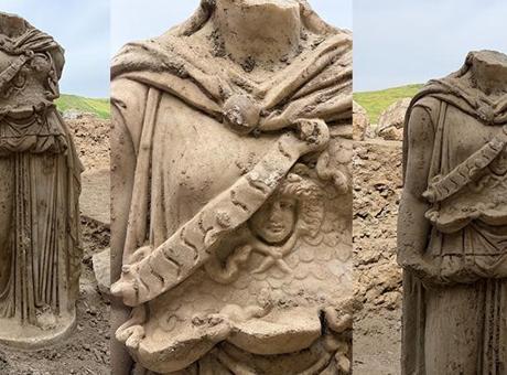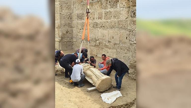 Yaklaşık 2 metre uzunluğundaki heykelin baş kısmı henüz tespit edilemezken beyaz mermerden yapılmış olması dikkat çekti.